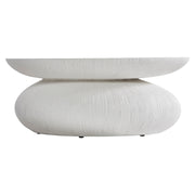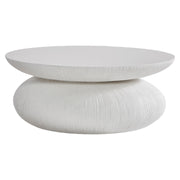 A round top with a smooth surface is perfectly poised over a rounded base on the Corsica outdoor cocktail table. With heavily textured sides, the table showcases balance and harmony in its natural stonecast design.