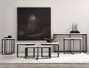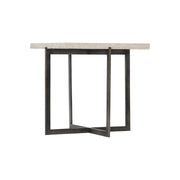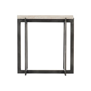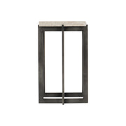 Bernhardt Occasional offers upscale designs for luxe living spaces. The Hathaway drink table presents contemporary style with geometric leanings. With origins in mid-century design, the sleek tubular steel base provides structural stability and clean, bold lines. An oil-rubbed bronze finish on the base creates an engaging contrast with the white travertine stone top, which features a chiseled edge.