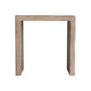 Crafted of carbonized teak in Sea Oat finish, the Montego side table balances shape and planes with a live-edge top. Straight vertical lines define the two panel legs.