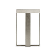 Bands of sandblasted aluminum intersect to form the base of the Tempo accent table. One band wraps through the table's top, which is wirebrushed oak in Larza finish. The architectural design is both casual and refined.