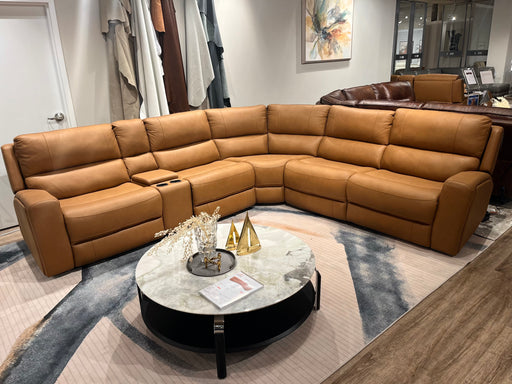 Brazil Tobacco Leather Power Reclining Sectional w/ Power Headrests