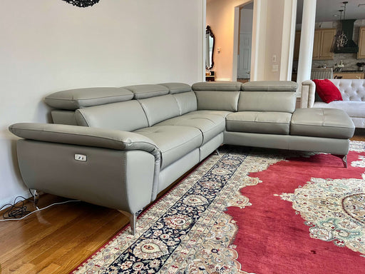 Modern Leather Power Reclining Sectional w/Chaise Storage & Adjustable Headrests. The unique design provides ample seating and a refined touch ...