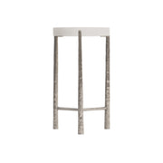 Cool California style finds its form in cast aluminum metal overlays on the Aventura accent table. Openwork freeform squares on the back and base of the C-shaped table reveal the wood frame in our Marcona finish.