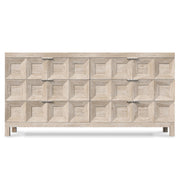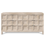 The Prado dresser finds its inspiration in the coffered ceilings of the Prado museum. Six pull-to-open drawers showcase a dimensional geometric design in cast resin overlays. Subtle grain patterns are highlighted with a Tawny finish.