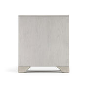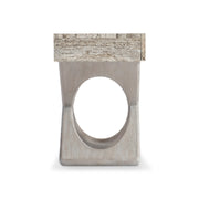 The X-shaped base on the Sereno nightstand offers a sophisticated aesthetic with two intersecting panels with an open organic shape. The base supports a stunning silver travertine drawer box that features an outlet on the back with a USB port.