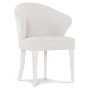 Silhouette is defined by bold contrasts, soft curves and a hint of Hollywood Regency glamour. Fully upholstered in light, textured fabric, the Silhouette arm chair blends comfort with opulence. Accentuated by welting, its elegant contours create a captivating profile. Sabre back legs and tapered front legs in Eggshell finish add a crisp, modern edge.