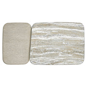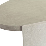 Monolithic shapes in organic materials create this stunning Arcadia cocktail table. Striated faux stone in Kalta finish forms one tier of the top, with cast resin in a cerused woodgrain Clay finish crafting the second tier and the plinth base.