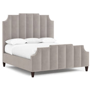 Blending modern and traditional elements, the Bayonne upholstered bed surprises and delights with sophisticated details. The notched, arched headboard features channel tufting accented by nailhead or welt trim. Exposed wood feet are available in smoke or espresso finish. Providing an elegant focal point for the bedroom, this transitional bed lends a look of timeless and tasteful luxury.