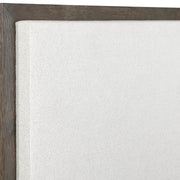 • Headboard has inset upholstered panel framed in wire-brushed oak in Cassel finish