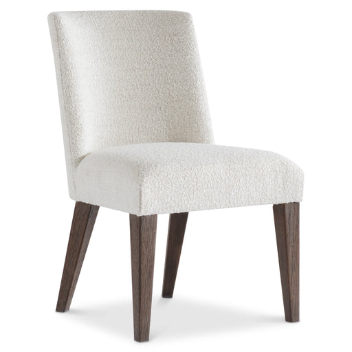 Deeply textured wood crafts a compelling frame for the Outline panel bed. Finished in Cassel, the headboard offers comfort with a raised and upholstered panel. Bold wood shapes extends around the bed to the footboard, ending in slim block feet.