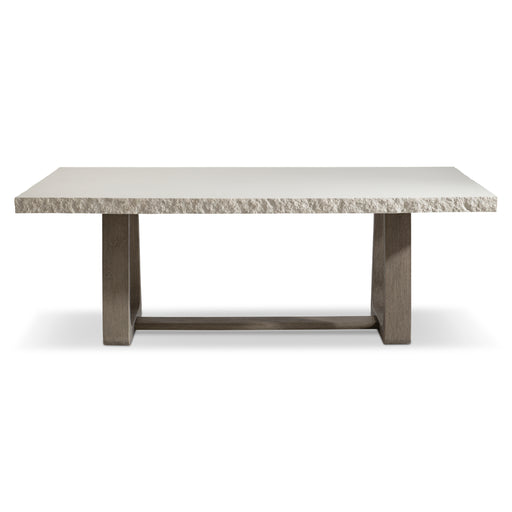 BernhardtDimensions Weight 358.6 lbs Width 84" Depth 46" Height 30" A modern organic design showcases the look of rough-hewn stone over a teak bas...