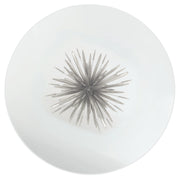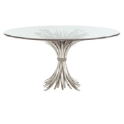 With its organic wheat motif design, the Somerset table brings an artistic and natural feel to a dining space. The cast aluminum base shimmers with plated leaves in a silver leaf finish, exhibiting meticulous craftsmanship. For a smooth finish, the clear glass top features an eased, polished edge.