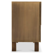 - Brass-clad with German silver technique in Aged Brass finish with patchwork multilevel door fronts