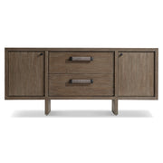 Clean lines emphasize texture and simplicity on the Casa Paros buffet. All eyes are drawn to the details: a twisted rope wrapped around the hardware, two flat leg panels and molding that frames the soft-close doors and drawers.