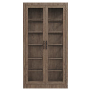 - Two wood-framed doors and end panels in Playa finish, with inset tempered glass
