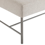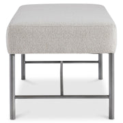 A sleek metal frame defines an open modern style for the Outline bench. Finished in Atra, the metal supports a deep upholstered seat for a balanced design and a casual look.