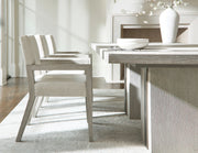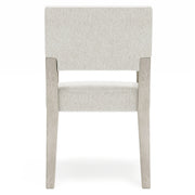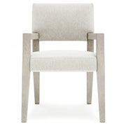 Straight lines and angles craft a modern linear style for the Tempo arm chair. Wirebrushed oak in Larza finish takes a straight approach for the arms and front legs, while the back legs angle away for a balanced look. The back interlocks into the wood frame while the deep seat provides lovely comfort.