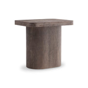 A classic pedestal table showcases a sleek form on the Dama side table. The modern organic look is highlighted with a simple column base that supports a square top with softened corners. The woodgrain is highlighted with the wirebrushed Brun finish.
