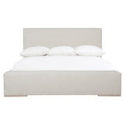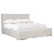 The Dunhill panel bed offers a balance of form and function. With a bold upholstered headboard, footboard and side rails, its seamless panels create a flowing, elegant look. The extra wide footboard also doubles as a bench for added seating.