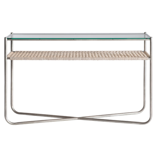 Dimensions Weight 80.6 lbs Width 56.25" Depth 16.25" Height 34.38" Glass, metal and natural fibers combine for a modern organic design in...