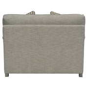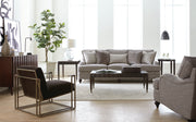 The Tarleton Chair brings expansive comfort in a softly rounded design. Curved arms provide padded support while giving you plenty of room to socialize. Seams across each arm create a folded look that showcases the richness of the upholstery. The angled back creates a relaxed profile while thick seat and back cushions provide enduring support. Turned legs mirror the arm design to complete the look.
