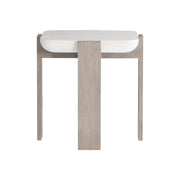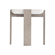 A faux concrete top in a Sand Grey finish is cradled in a wood frame for the Gooding side table. The basin shaped top is supported by wooden legs that flow to the top. The exposed wood is finished in Flint for a modern organic style.