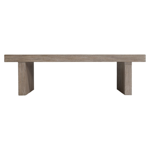 Dimensions Weight 130.1 lbs Width 56" Depth 36" Height 17" Crafted of carbonized teak in Sea Oat finish, the Melbourne cocktail table bal...