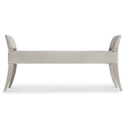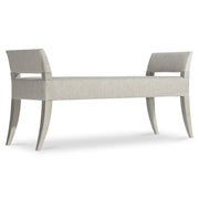 The sides of the Cornelia bench curve dramatically from the floor to the top of the padded arms. Combined with the straight lines of the upholstered seat, the design highlights a refined neotraditionalism. The exposed wood frame is featured in the Nebbia finish.