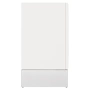 - Also behind the center doors below a fixed shelf is one soft-close drawer with hand-pull cutout and two compartments below divided by a center partition