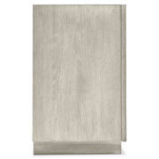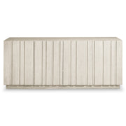 Rhythmic vertical panels of wood create a beautiful depth and dimension on the Tempo entertainment credenza. Crafted of wirebrushed oak in Larza finish, the credenza has four push-to-open doors and sits on a plinth base. The interior offers six adjustable shelves.