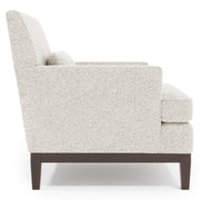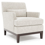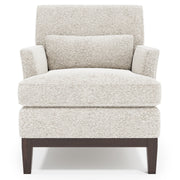 The Cumberland chair offers luxurious comfort in a transitional style. Clean horizontal lines, flared arms and tapered legs on the exposed wood frame draw inspiration from mid-century modern design. The expansive seat features sinuous spring construction and a luxe down cushion, delivering the highest level of comfort.
