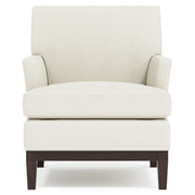 The Cumberland chair offers luxurious comfort in a transitional style. Clean horizontal lines, flared arms and tapered legs on the exposed wood frame draw inspiration from mid-century modern design. The expansive seat features sinuous spring construction and a luxe down cushion, delivering the highest level of comfort.