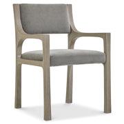 Dynamic shaping gives the Ronin arm chair a casual modern style. An upholstered back and seat appear to float between two side frames. The exposed wood has shapely side openings and is finished in Forry.