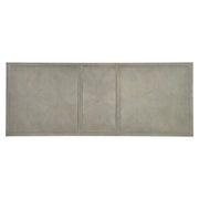 An understated, quiet beauty is showcased in the Cornelia dining table. Two octagonal cast resin pedestals have the look of wood grain in the Nebbia finish. They support a beautiful rectangular top featuring a parquetry top outlined with a brushed stainless steel metal inlay.