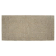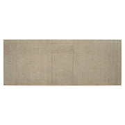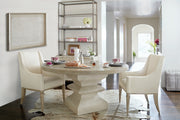 Traditional style meets California cool in the Santa Barbara rectangular dining table. Casual and welcoming, it features a fancy face top with wire-brushed, cerused oak veneers in a warm Sandstone finish. The veneer pattern accentuates the subtle textures and lighter strokes of color in the grain. A hexagonal faux stone pedestal base is presented in a complementary Textured Cameo finish, rounding out the fresh, neutral color palette.