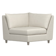 Relaxation meets sophisticated European styling. With a low, deep seat and superior plush cushion, the Joli corner chair is the ultimate in comfort. Stylish and modern, this piece combines natural fabrics with relaxed tailoring and gracious scale.