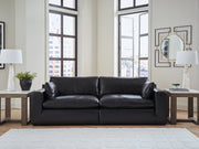 Catering to your contemporary lifestyle, this sectional loveseat is a handsome marriage of masculine and feminine sensibilities. Feather-fiber cushions and bolster pillows soften the look of its chunky, linear silhouette. A warmly hued combination of leather and faux leather upholstery levels up the affordable luxury. And you'll never run out of ways to stage this seating arrangement—each piece is fully finished on all sides and capable of standing solo. Urban sophistication has never been more versatile.