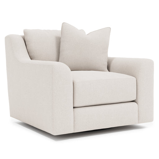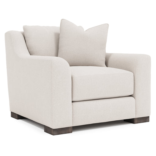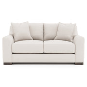 The Gabi loveseat offers an alluring comfort destination with sweeping lush curves. The oversized arms frame deep seat cushions and knife-edge back pillows. Exposed wood block feet support the bold design.