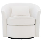 Bernhardt Exteriors is characterized by exceptional luxury, ultimate comfort and stylish design. With its classic barrel design, the Aventura swivel chair strikes a chic and modern silhouette. Tightly upholstered in all-weather fabric, it swivels on an aluminum base finished in a gray powder coat.