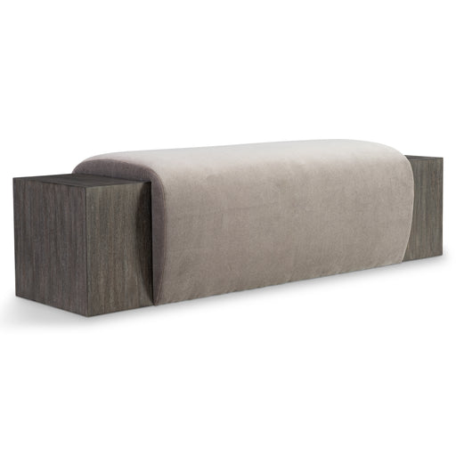 BernhardtDimensions Width 68" Depth 20" Height 18" Shape and texture find common ground on the Belo bench. An upholstered seat wraps around a mahoga...