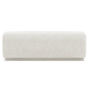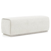 The top of the Tempo bench appears to fold over the long seat, giving the design a comfortable modern style. The seat rests on a wooden plinth base in Larza finish. It's a linear look that offers flawless balance.