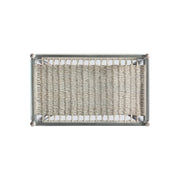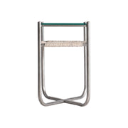 • Steel frame in Graphite finish with woven abaca shelf in Light Grey Wash finish and a tempered glass top