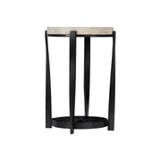 Bernhardt Occasional offers a range of upscale designs for luxe living spaces. The Berkshire accent table pairs elegant stone with textured steel. Finished in aged pewter, the dark metal base contrasts with the organic, neutral hues of the round stone top. Twisted steel legs add movement and visual interest.