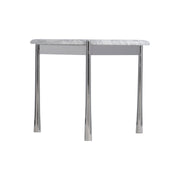 There is perfection in the imperfect shape of the honed Arabescato top on the Arris side table. Sitting on a polished stainless steel base, the table balances structure and movement, including shaped legs that tape out at the bottom.