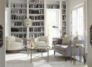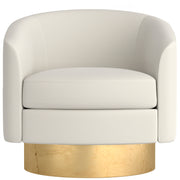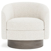 The Camino swivel chair is elegance in motion. Luxurious spring down cushioning invites relaxation, while the barrel back design brings softness and balance to a room. In keeping with the clean modern aesthetic, a wide, round wooden base conceals the swivel. Welt trim is a subtle finishing touch.