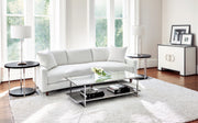 Defined by low arms, a deep seating area, and elegant, tapered legs this clean-lined sofa will bring a touch of contemporary style to any aesthetic. Luxurious fabric upholstery envelops the design and completes the streamlined look on the Carlie sofa perfectly.