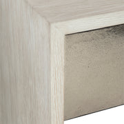 Bernhardt Interiors offers high-design furniture with an eclectic edge. Sleek and modern, the Lowe nightstand features a minimalist wooden frame and a single push-to-open drawer. White oak veneers in a jicama finish pair elegantly with cast aluminum in a shiny nickel finish.