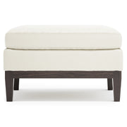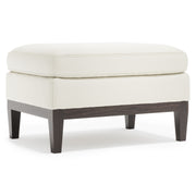 Delivering the highest level of comfort, the Cumberland ottoman features a plush rectangular cushion with luxuriously fitted leather. The relaxed and inviting seat sits atop an exposed wood base with sleek tapered legs. Sophisticated and stylish, this ottoman adds a refreshing pop of transitional style to any decor.