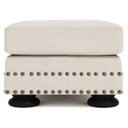 The Foster leather ottoman offers comfortable support with an air of traditional grandeur. A plush cushion invites relaxation, while nailhead trim and bun feet exude refinement. From a variety of fine leathers, sophisticated wood finishes and nailhead accents, this ottoman may be customized to suit any room.