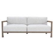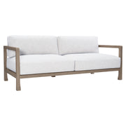 Simply designed and finely crafted, the Tanah sofa combines clean lines and geometric angles for a distinctly modern look. The open frame is crafted from weathered teak, a naturally durable and water-resistant material that grows more beautiful with age. Dressed in performance fabric, fiber back pillows and deep, sumptuous cushions provide unrivaled comfort. A stylish, sophisticated sofa for the luxe outdoor space.